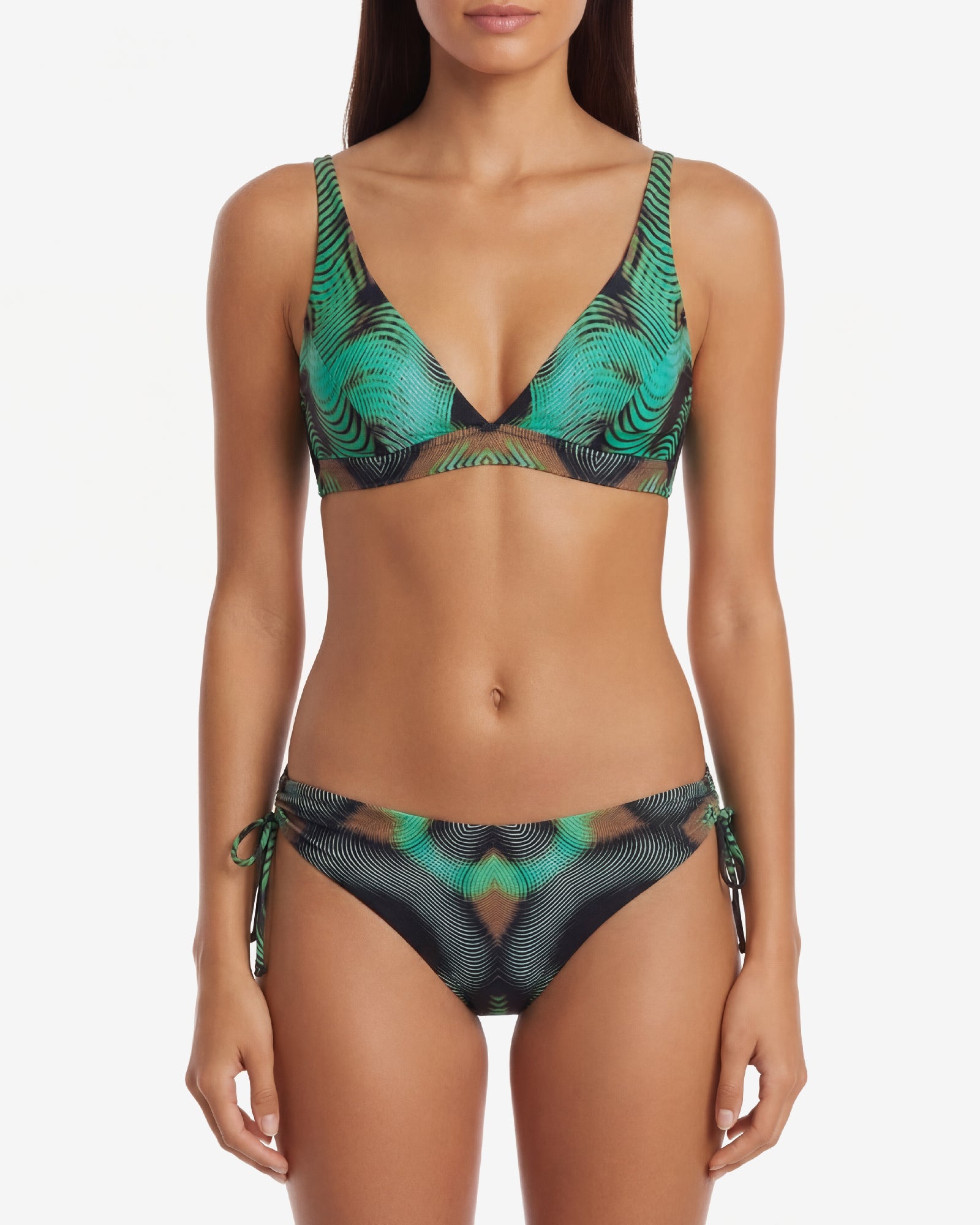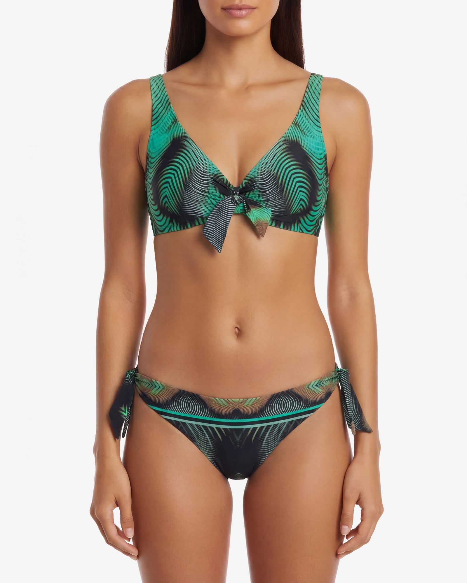 Ein optisches Design definiert Rhythmus und Struktur, verwandelt Licht in Materie und Oberfläche in Volumen. Schillernde und kostbare Stoffe folgen den Linien des Körpers, verstärken seine Bewegung und spiegeln eine zeitgenössische Eleganz wider.