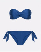 Il Bikini a fascia blu con coppe fisse e ferretto interno offre taglio sartoriale che sostiene il décolleté. Tessuto liscio e setoso, con lieve lucentezza, esalta il blu intenso.